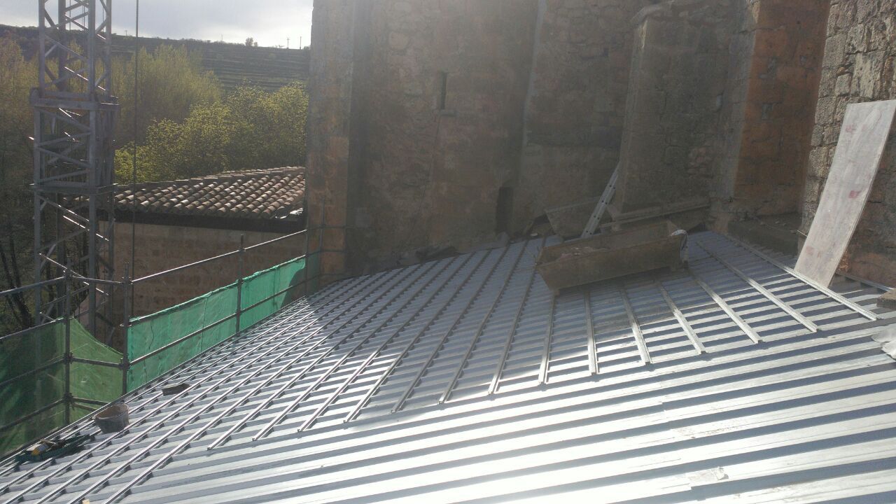 Se trata de conseguir la correcta evacuación de las aguas facilitando el mantenimiento futuro de las cubiertas. Actualmente con malos remates y encuentros, escasa pendiente en algunos tramos, incompatible con el material de cobertura empleado, que produce la acumulación de tierra y vegetación en los ríos, por los que no discurre el agua convenientemente, buscando caminos alternativos.